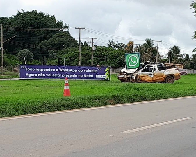 Os carros acidentados também estão acompanhados de outdoors que trazem mensagens impactantes sobre as consequências da imprudência, uso de celular ao volante, ultrapassagem em local proibido, ausência do cinto de segurança e consumo de bebida alcoólica na direção. As mensagens registradas nos painéis expostos na rodovia são: